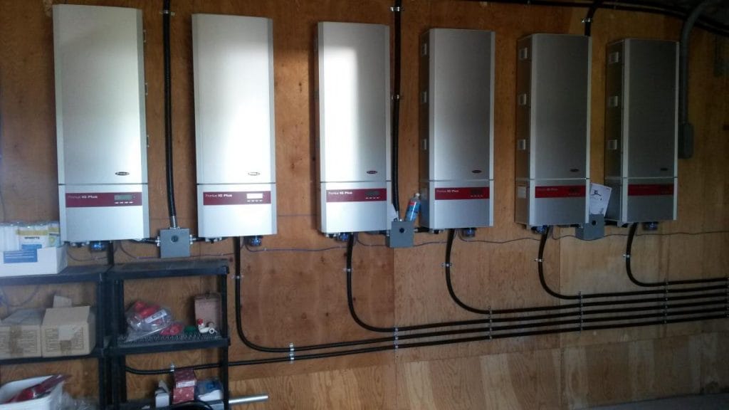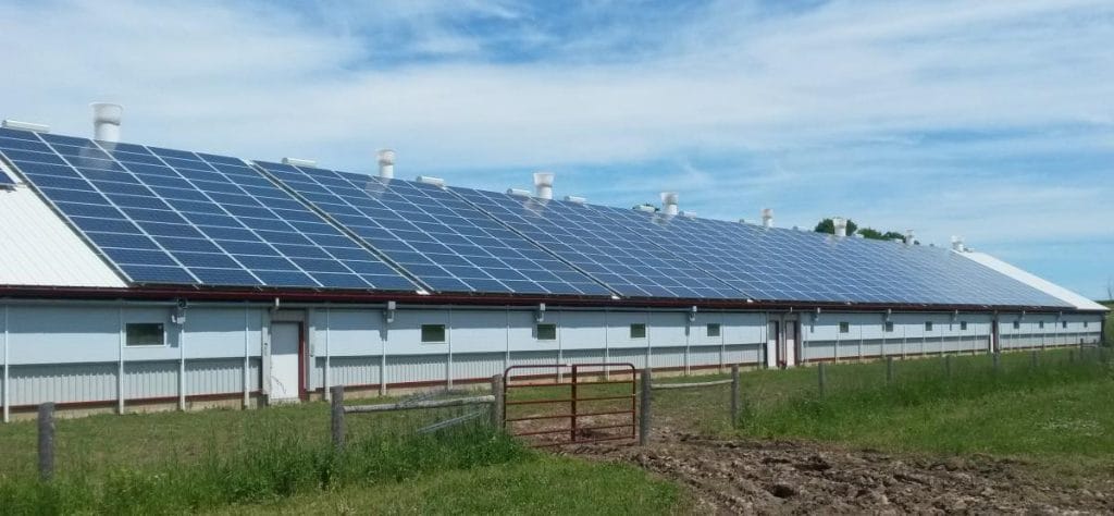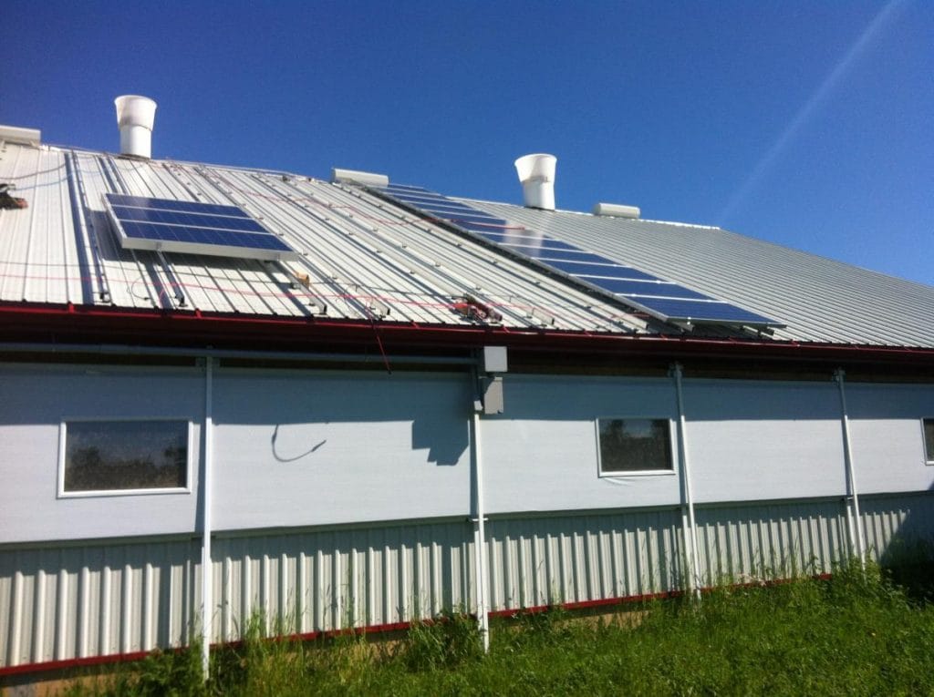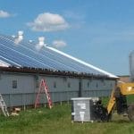 Both projects faced the same challenges: moving large amounts of material onto the barn roofs and the need for flexibility in scheduling construction and service to avoid disrupting the barns’ livestock. Given the large amounts of material, we used a telehandler to move full skids of modules from a storage trailer to any rooftop point from the eave to the peak. Scheduling was tricky but, with careful planning, we managed to get everything done with no ruffled feathers.
