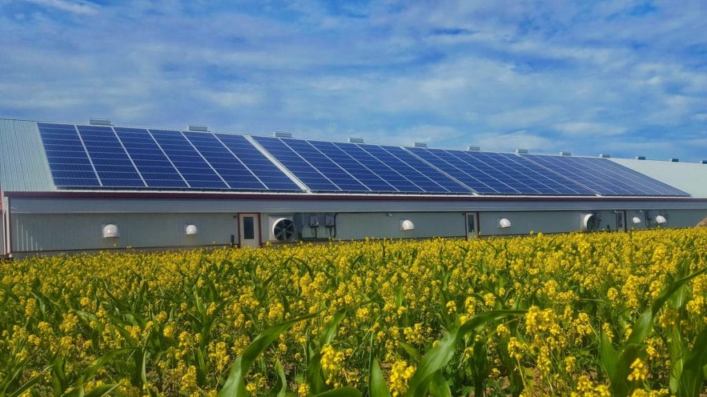 To generate a second income for the farm, almost 500 PV modules were mounted atop the first organic poultry barn to create a 105 kW system and sell the energy on a long term contract at a fixed price. On the roof of the second barn, a 47kW net metered system provides for the energy requirements of the farm. The organic poultry operation is entirely powered by the sun and operating energy costs are stable for the life of the system (20 to 30 years). The array was designed to provide enough power for the current needs and the increased consumption of an upcoming expansion. By using high output panels, half of the barn roof still remains available for further expansion.