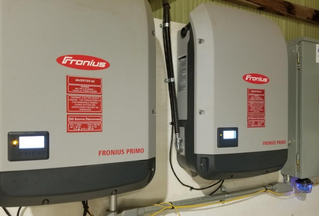 To help realize the client’s goal of a property with zero fossil fuel consumption, rooftop solar arrays were mounted on both the residence and a drive shed for a total production of 57kW (DC). Combined with three Mitsubishi high-efficiency cold weather heat pumps, the solar systems contribute to the overall goal of deep electrification. Since the residence had a standing seam steel roof, S-5! clamps were used to provide a worry-free, penetration-less rooftop mount for the array. Black-on-black modules create a simple black roof befitting a modern getaway in the wooded countryside north of Mono.
