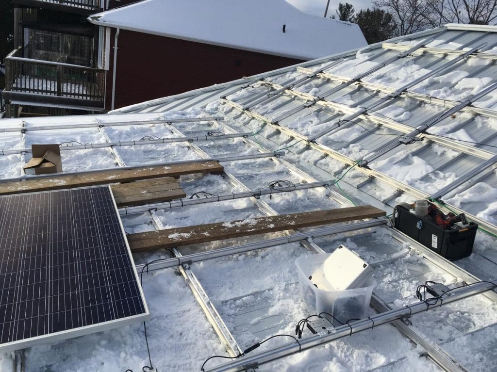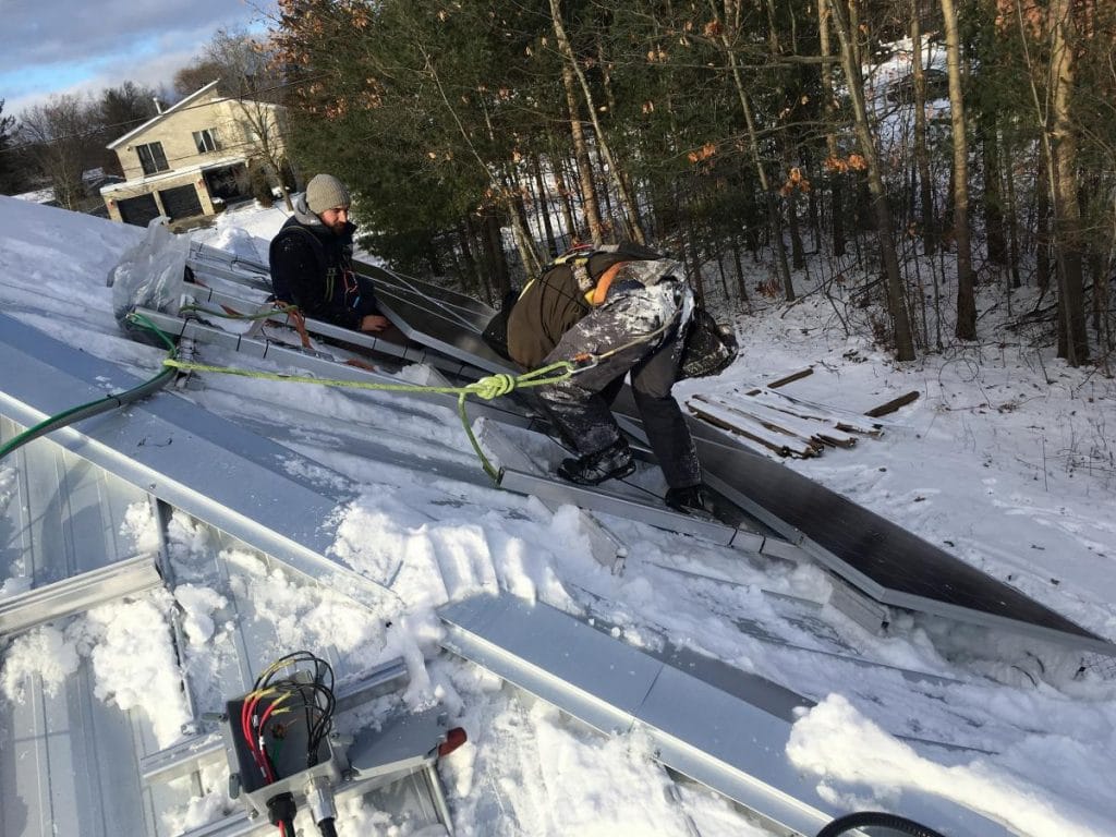 Designing a suitable array for the roof top was challenging because the limited roof space was also broken into four separate surfaces. By using a double rail system, we were able to install the panels in a landscape orientation and maximize the available space. We also used the Solar Edge system, which uses modular optimization to maximize the potential of the roof top array. The combination of S-5! seam clamps with the existing standing seam steel roof meant that there were no penetrations of the roof and the thought of leaks would not be keeping the client awake at night. Lastly, in a growing trend referred to as “solar plus storage,” a Tesla Powerwall was incorporated into our system design to allow the client to produce his own energy and store it as well.