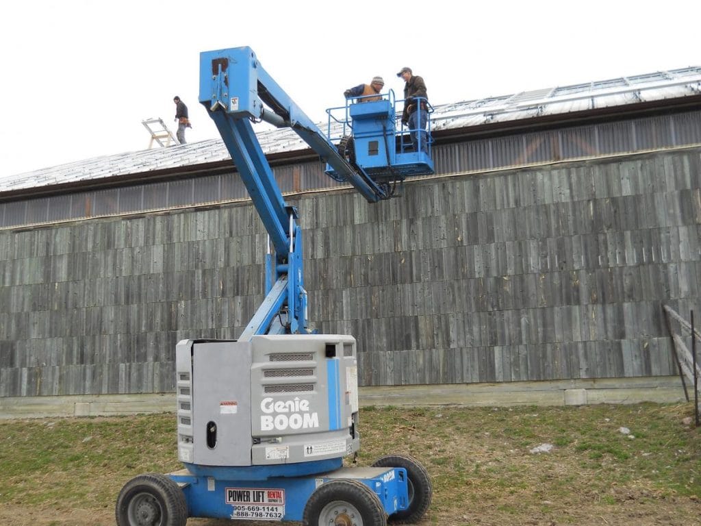 The two barns were in great shape and adding a PV array was a natural choice for the owner but fitting all the desired solar onto the limited roof space was not easy. The owner, a qualified mechanical engineer, designed his own custom racking system with our help and the resulting array actually overhangs the roof peak on both barns. While unconventional, supported with appropriate engineering, the system maximized the potential of the limited roof space. The final system design was equipped with full weather monitoring for tracking performance against expectation and used multiple smaller string inverters to maximize serviceability and minimize down time in the event of a failure.